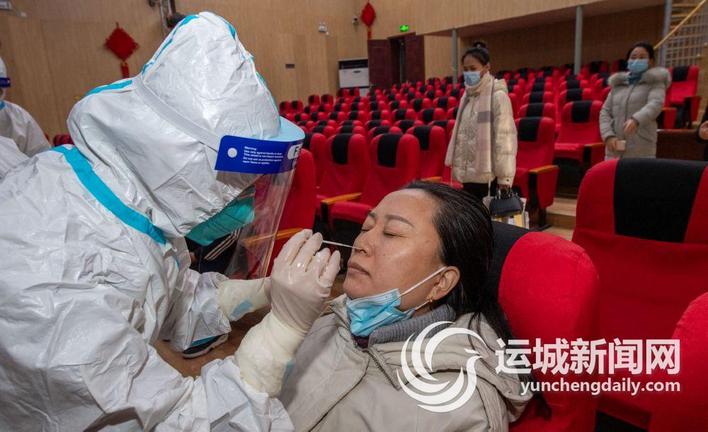 12月23日,市中心医院的核酸检测人员在给市文旅系统工作人员进行核酸检测取样。
