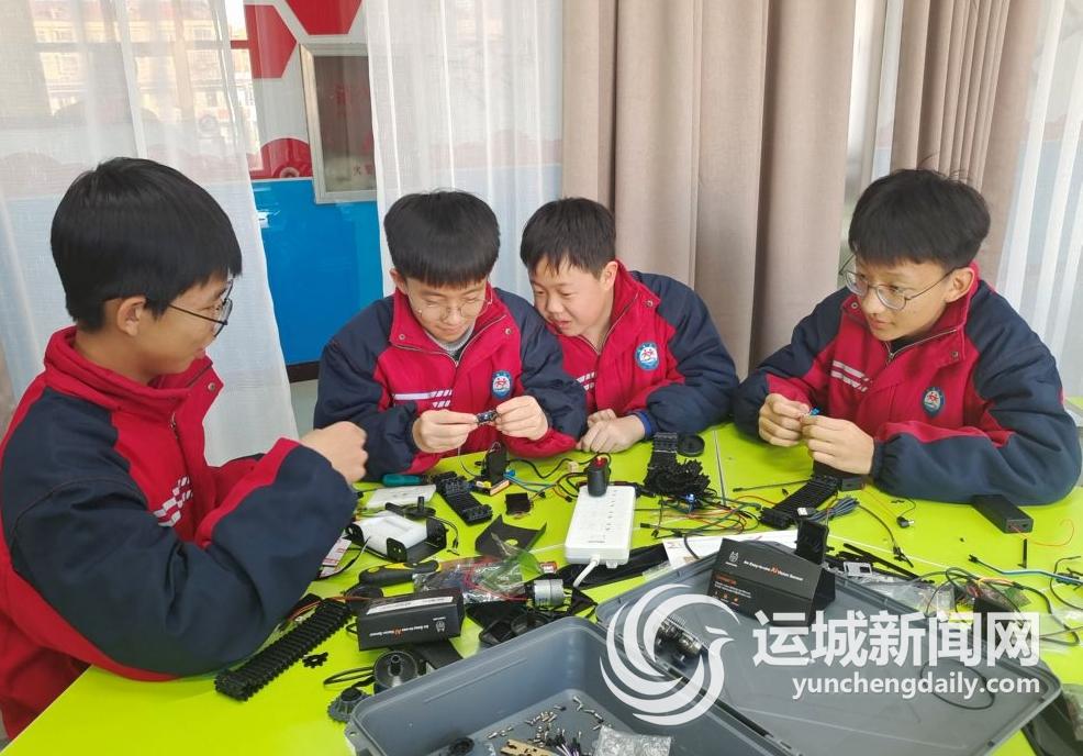 ▲近日,垣曲初中创客社团的学生们在一起进行新的创作。