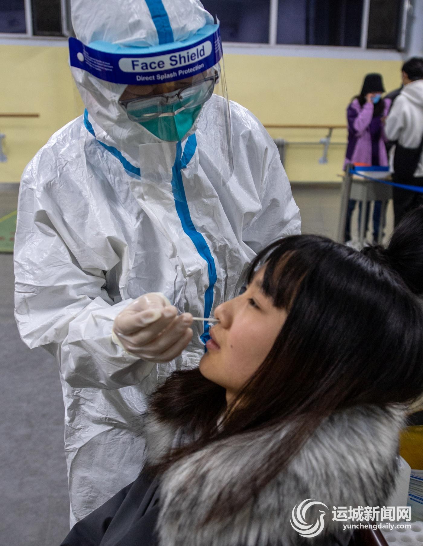 12月24日,市中心医院医护人员在给山西省蒲剧艺术院的师生进行核酸检测采样。