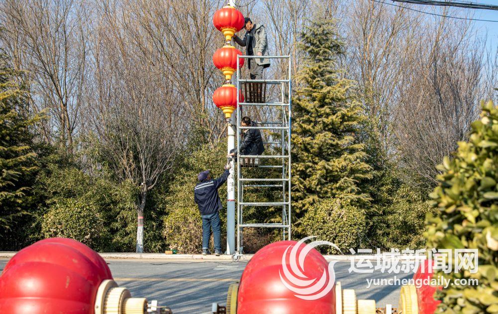 闻喜县后宫乡新阳庄村村民在安装红灯笼,装扮村庄。 记者 金玉敏 摄