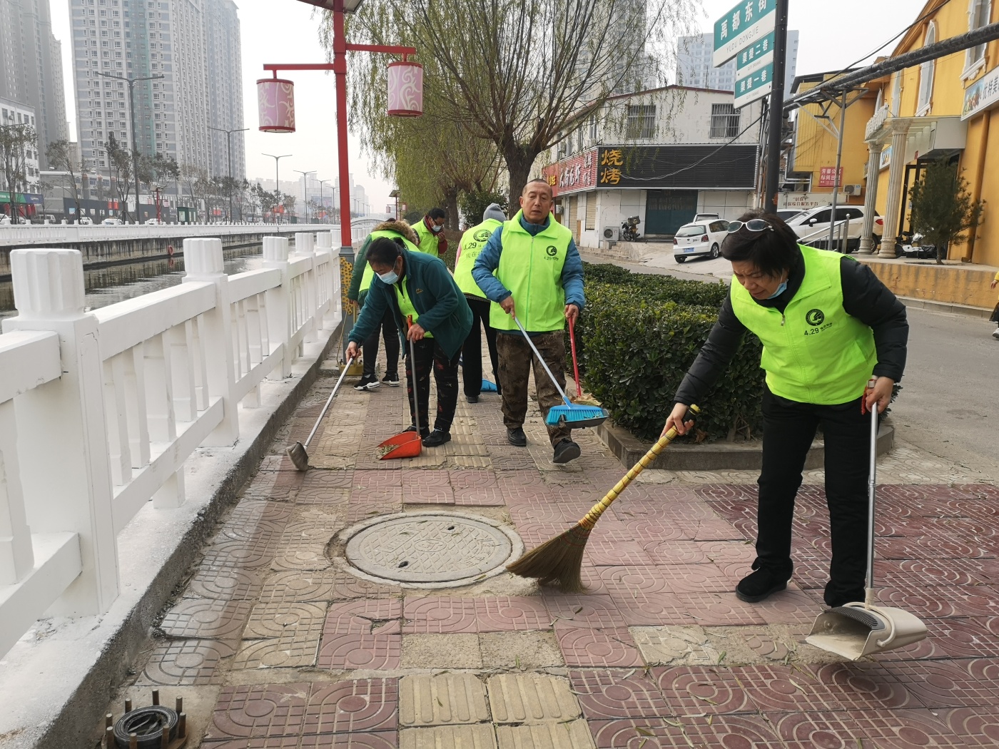 活动中,志愿者们不畏寒冷天气,自带工具,捡拾花坛杂物、清理街边落叶,并将堆放在垃圾桶旁的垃圾清扫干净。他们不怕脏、不怕累,一边清扫垃圾,一边向路过群众宣传环保知识,劝导大家爱护城市环境卫生、爱护公共绿地,不要乱丢乱弃,营造整洁的公共环境。