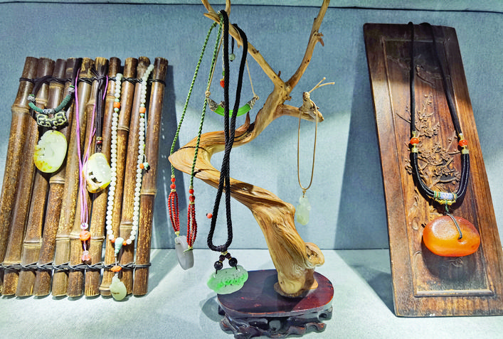 何为“二次打磨”?张琪介绍,玉石从原石变成饰品,是第一次创作,这凝结着雕刻师的无数心血。成为饰品后,如何让它更加与众不同,就是“二次打磨”了。比如,打算作吊坠,要注意挂绳的选择;还有一些点缀之物的运用。