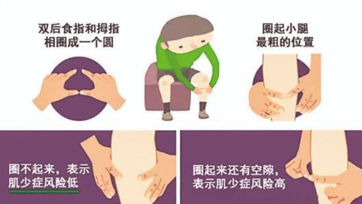 据了解,引发肌少症的原因与年龄、营养摄入、运动量及疾病等相关。“随着年龄的增长,肌少症的患病率会增高;一些蛋白摄入不足,营养不良,活动量减少,或者患有恶性肿瘤、慢性心肺疾病等消耗性疾病的老人,也易出现肌少症。”张国梁说,人体肌肉量本就会随着年龄增长而减少,老年人若出现提不起东西、走不动路、易疲劳、易生病等现象,就要考虑是否患上了肌少症。