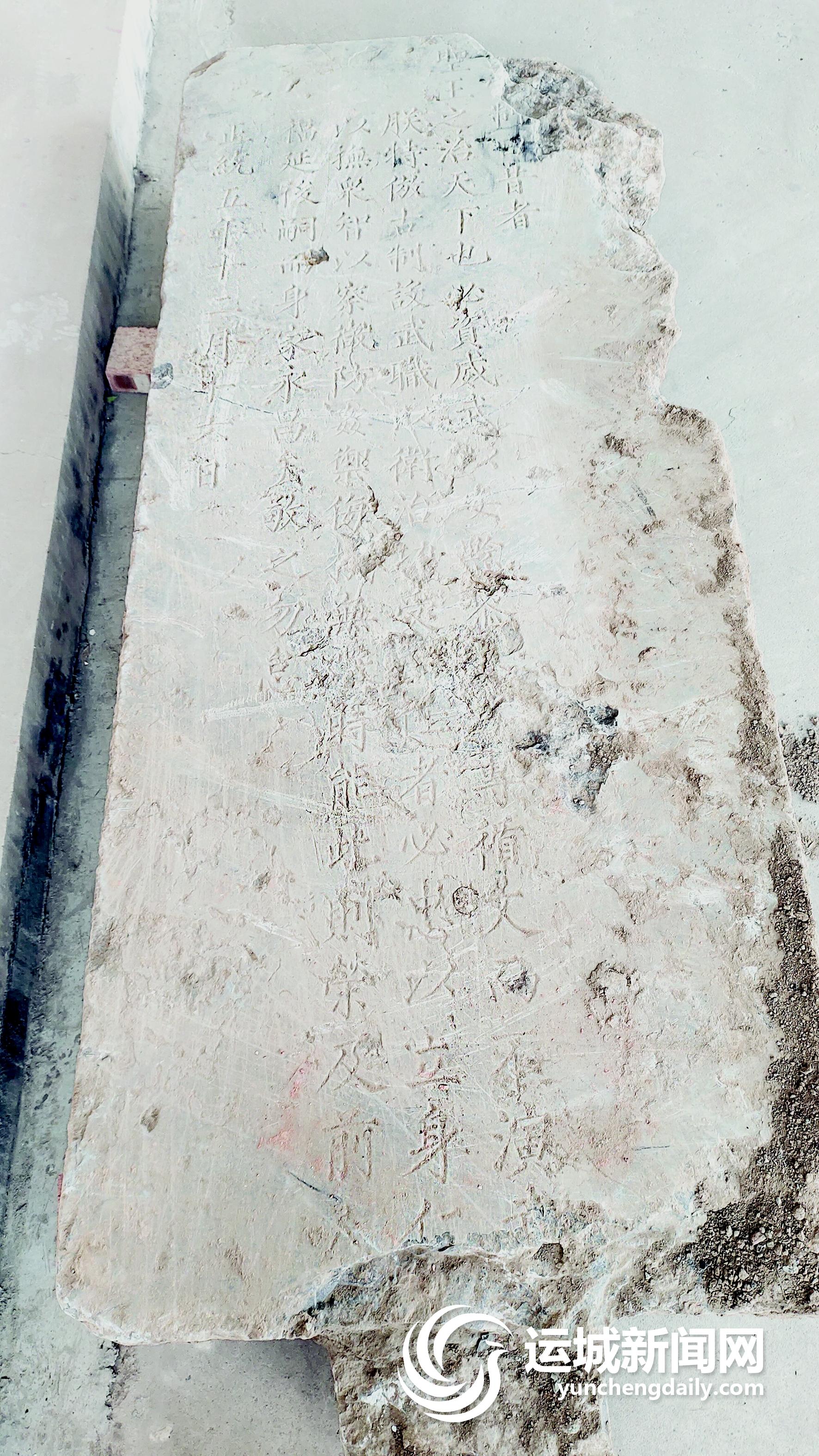 近日,永济市蒲州镇花园村村委会主任张有社组织村民挖下水道时,意外发现了一块古代石碑,第一时间向文物部门报告。永济市文物保护中心接到报告后,立即组织工作人员赶赴现场进行勘察处理,将古碑运往永济市博物馆进行妥善保管修复,相关研究工作正在开展中。