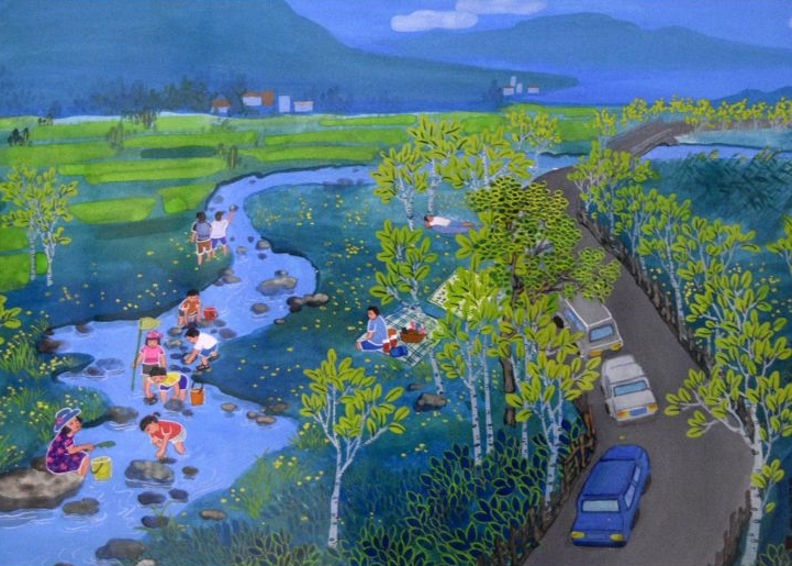 青山绿水白沙河 (农民画) 裴丹莉 作