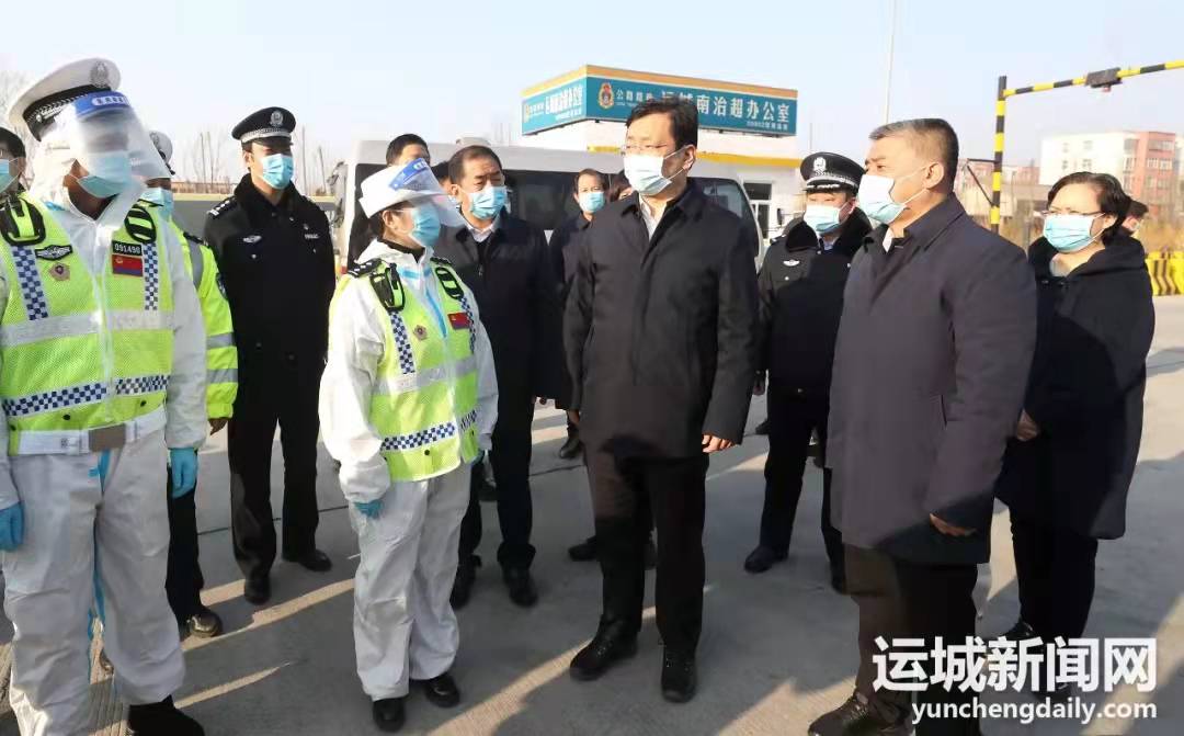 在运城绕城高速公路南口,丁小强详细询问疫情防控工作人员的工作流程、核验事项等,对他们的辛苦付出表示感谢。他要求,要严格执行“三码”联查、检测消毒的防控要求,加强对重点地区返(来)运人员车辆的排查管控,做好自身防护,坚决守好“外防输入”的防线。