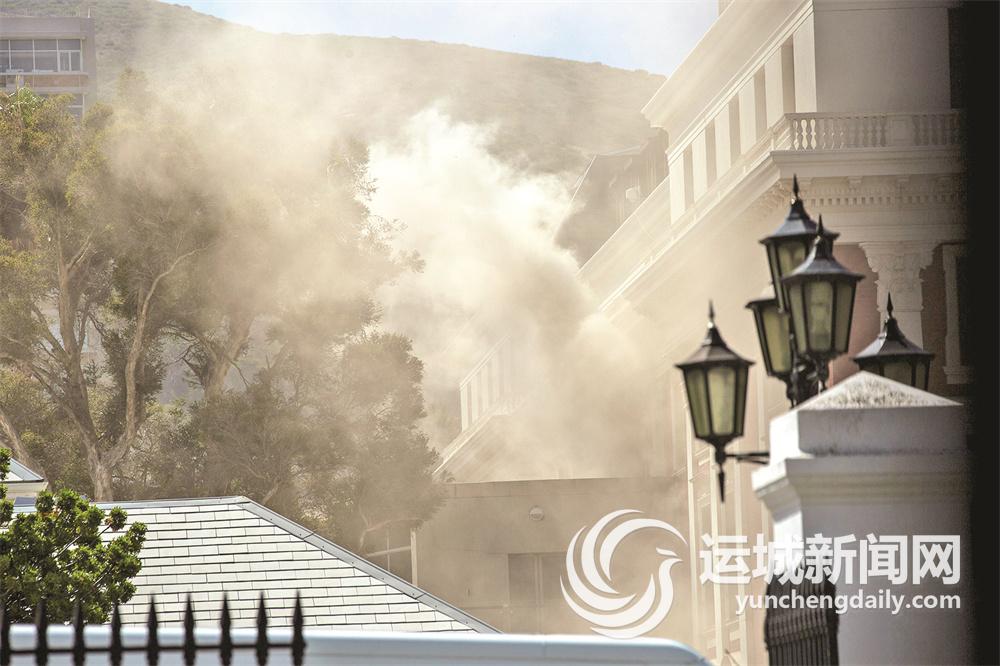 ▲1月2日,南非开普敦的议会建筑冒起浓烟。