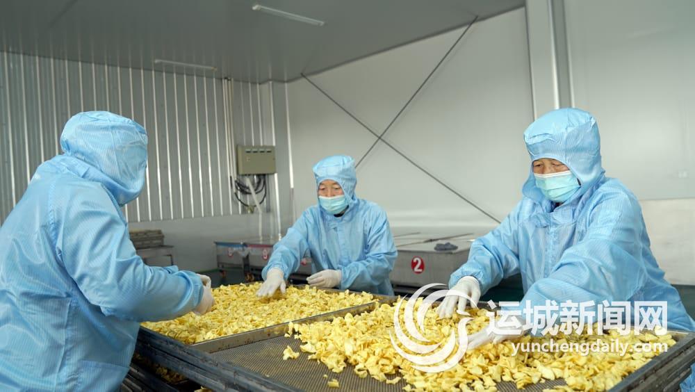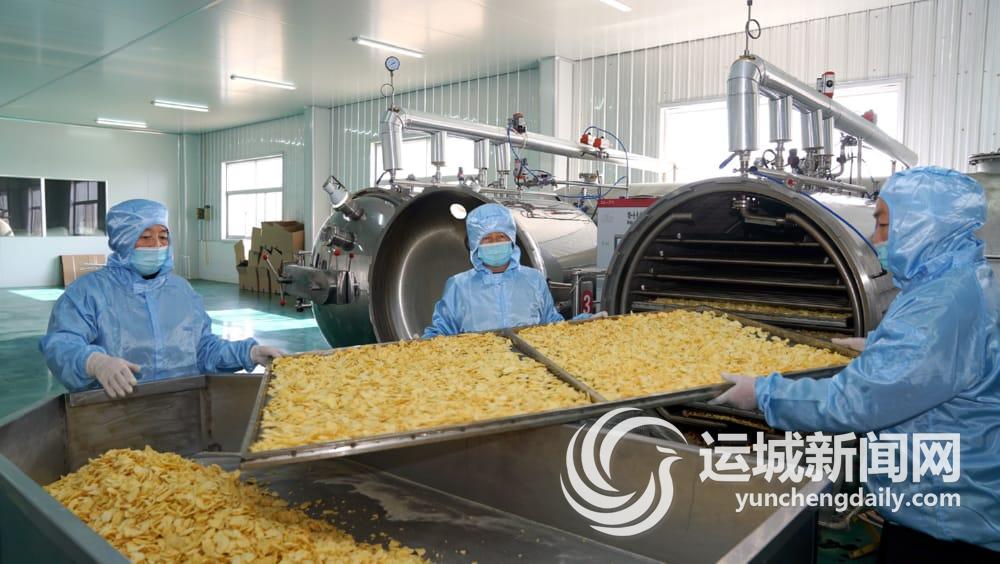 2021年12月29日,芮城县宇恒食品有限公司员工在对产品进行检验。