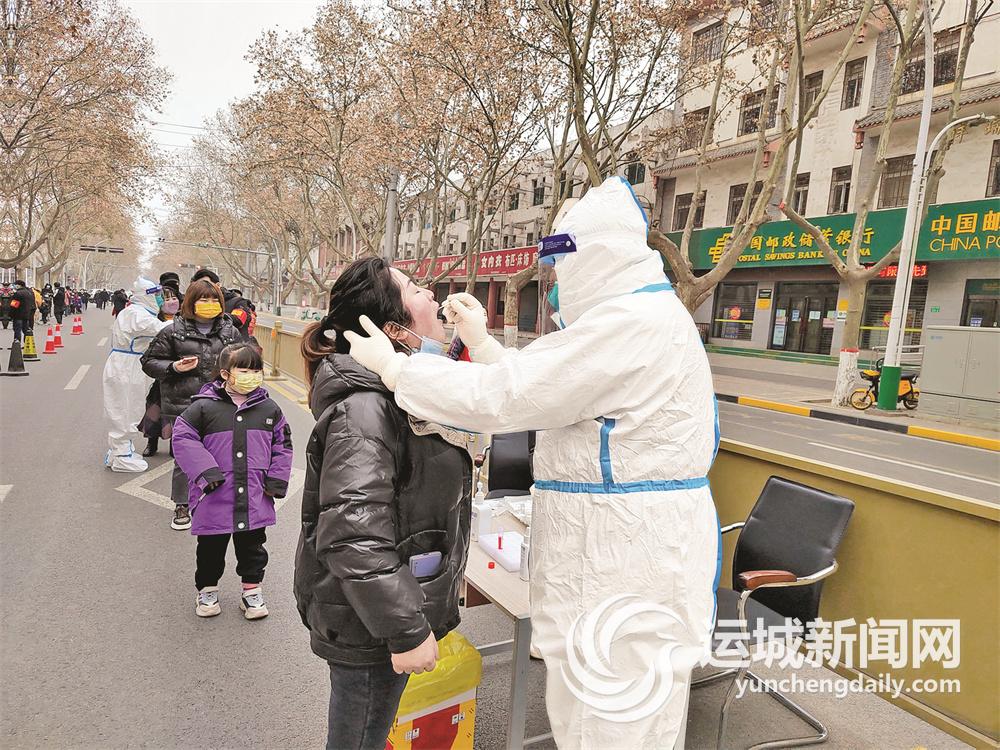 1月6日,市中心医院的医护人员在永济市城东街道为当地群众进行核酸采样。