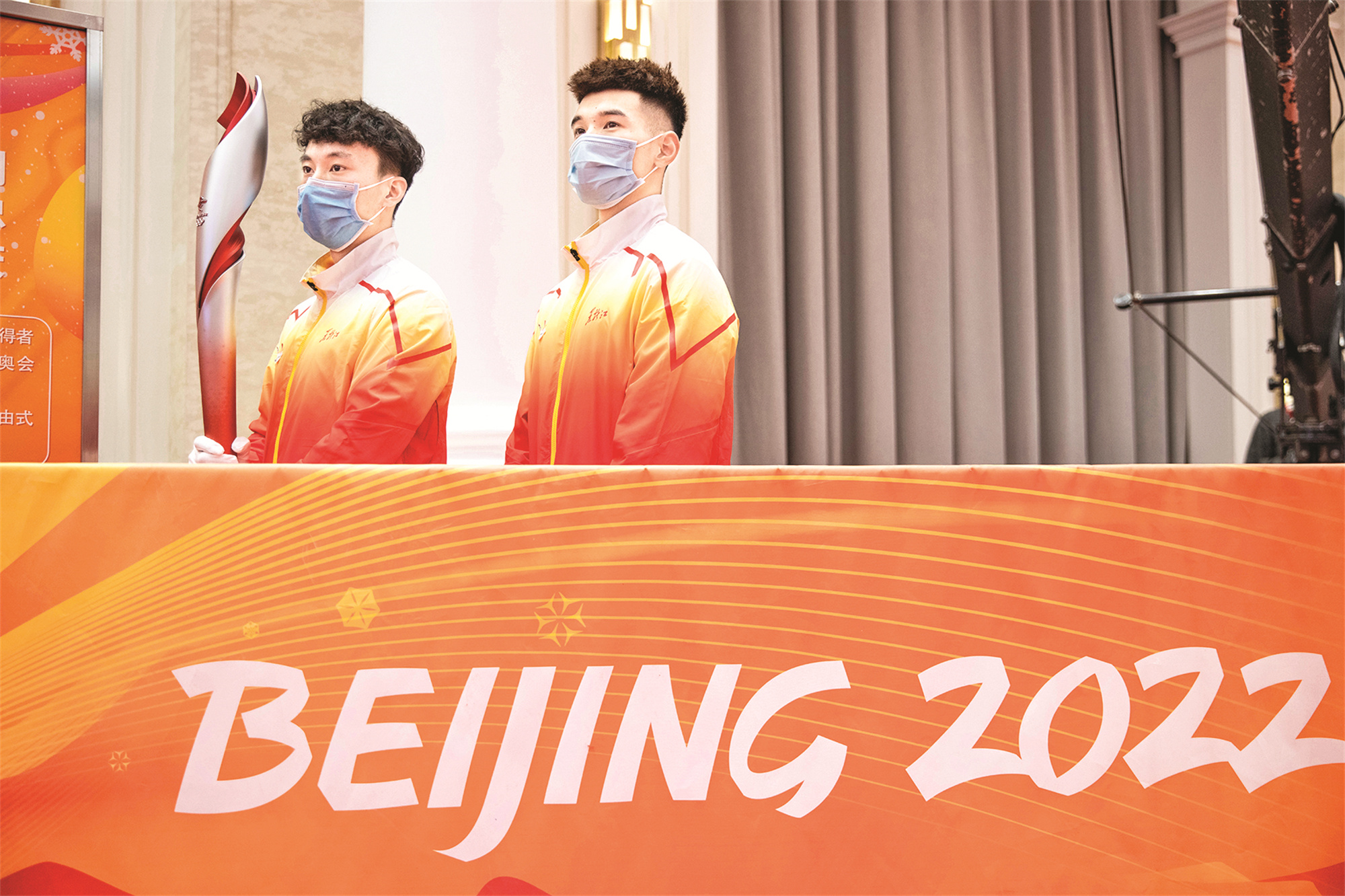 1月5日,志愿者在活动现场手持火炬进行展示。 当日,北京2022年冬奥会火炬展示活动在黑龙江省哈尔滨市举行。本场活动结束后,冬奥火炬还将陆续在大庆、齐齐哈尔进行展示。 新华社记者 张涛 摄