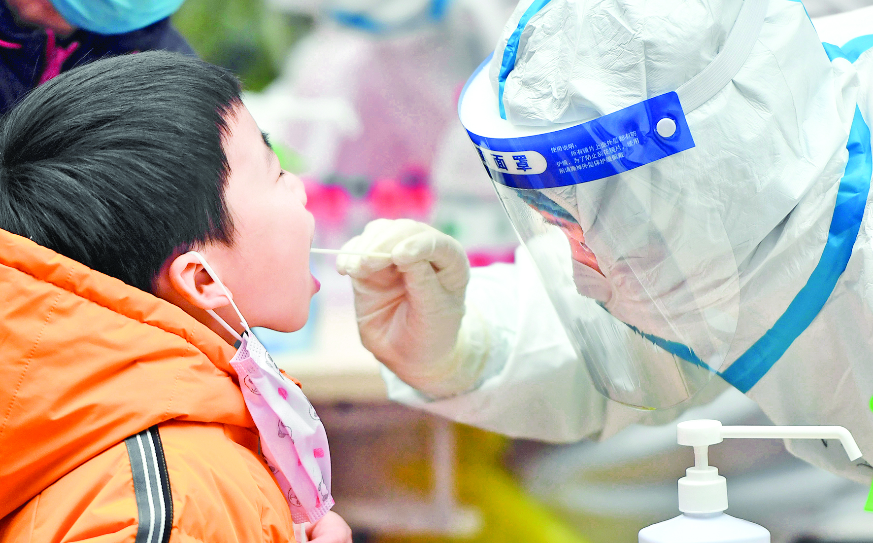 1月7日,在郑州市经八路办事处一处检测点,郑州大学第二附属医院的医护人员在为小朋友做核酸检测。 当日,郑州市开展第二轮全员核酸检测,检测对象包括郑州市域内所有居民(包括本地常住人口、暂住人口、临时流动人口、外籍人口等)。