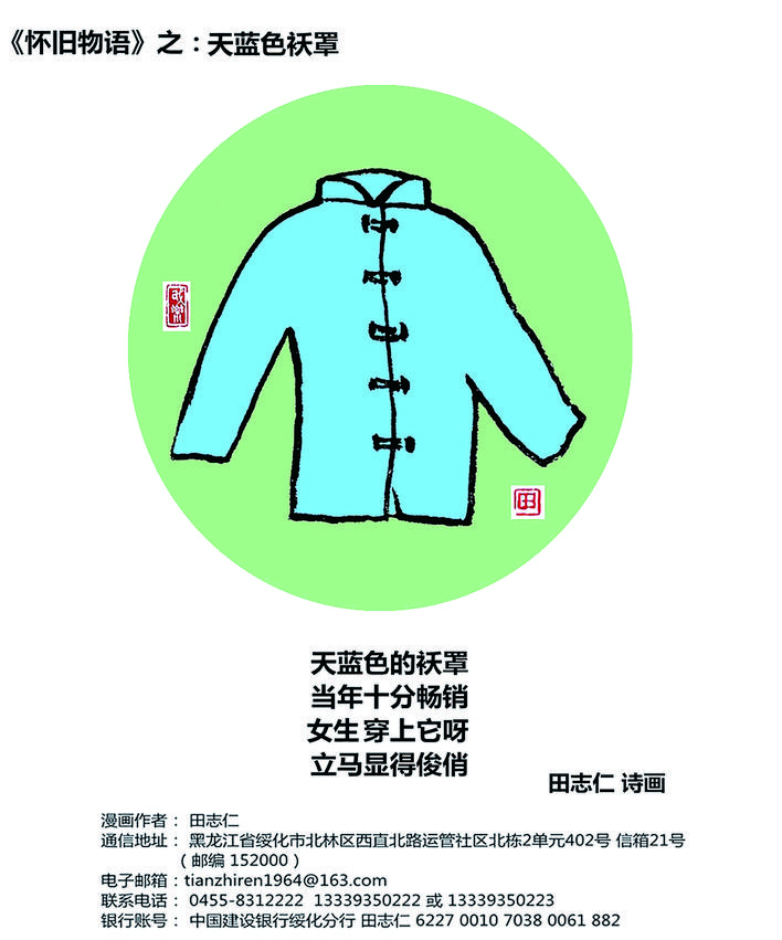 袄罩 天蓝色的袄罩 当年十分畅销 女生穿上它呀 立马显得俊俏