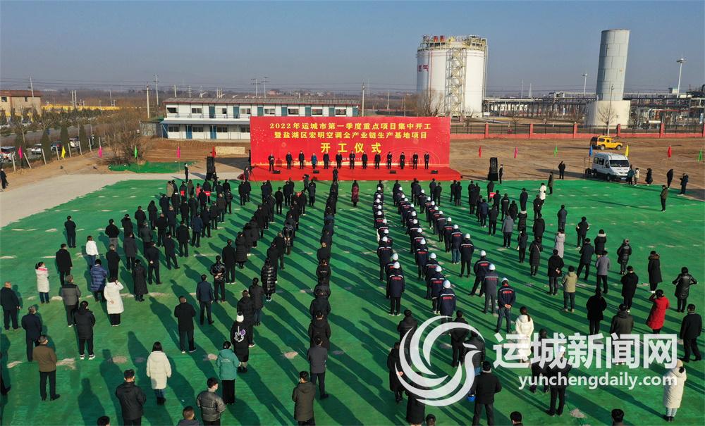 本报讯(记者 王文军)1月11日,2022年全市第一季度重点项目集中开工暨盐湖区宏明空调全产业链生产基地项目开工仪式在盐湖高新技术产业开发区举行,全市152个重点项目同步集中开工,总投资233.7亿元,年度计划投资94.8亿元。市委书记丁小强出席并宣布开工。市领导王立刚、邓雁平、张润喜、乔登州、赵晔、梁清燕等出席开工仪式。市委常委、常务副市长陈杰主持开工仪式。副市长李哲介绍全市第一季度重点项目集中开工情况。
