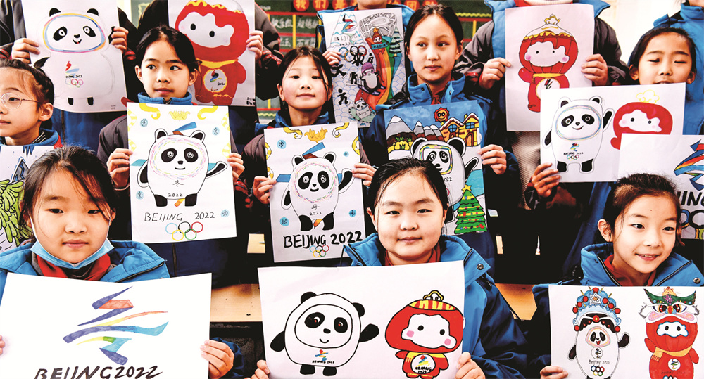 1月10日,垣曲县七一小学绘画社团的孩子们展示他们临摹的北京冬奥会吉祥物。寒假前,该校围绕即将开幕的2022年北京冬奥会和冬残奥会,让喜欢美术的小学生用彩笔画出了冬奥会会徽及吉祥物“冰墩墩”“雪容融”,弘扬奥运精神。 特约摄影 崔松良 摄