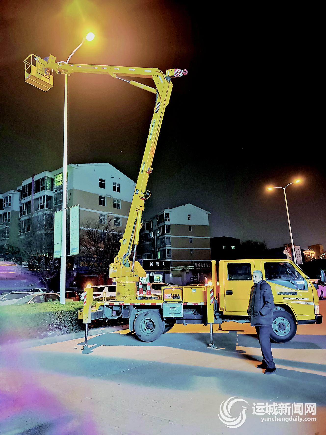运城晚报讯(记者 祁克宁)1月13日晚,经过13天的紧张有序施工,市区迎太路的路灯亮了。
