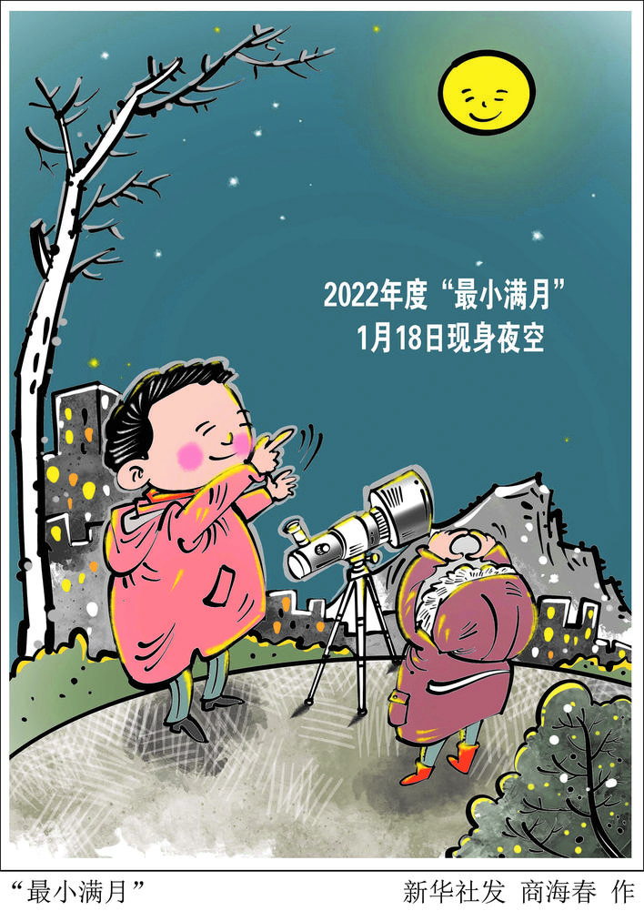 ▲1月18日,农历腊月十六,一轮满月将现身夜空。这轮满月有些特别,它是农历辛丑牛年最后一轮满月,也是2022年第一轮满月,更是2022年度“最小满月”。 (新华社发 商海春 作)