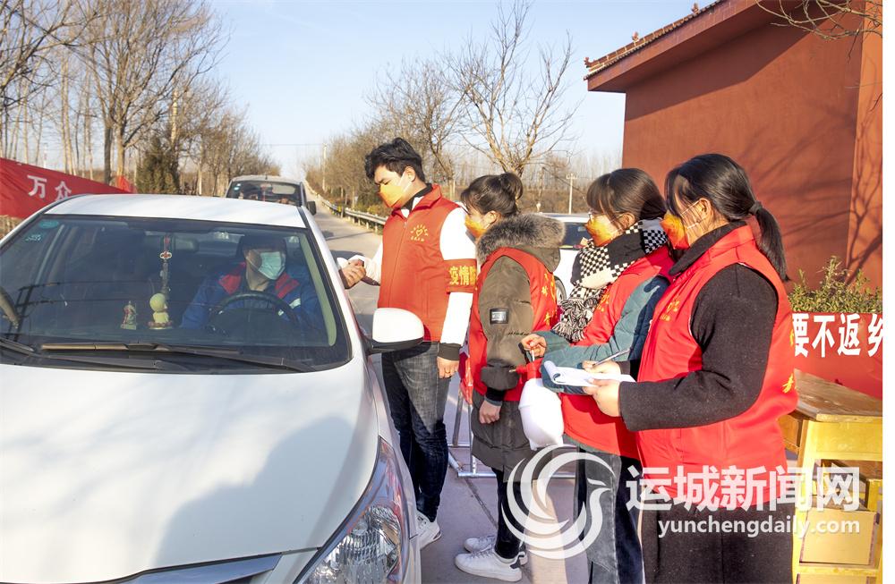 1月12日,夏县裴介镇朱吕村数名大学生在村口义务值勤。