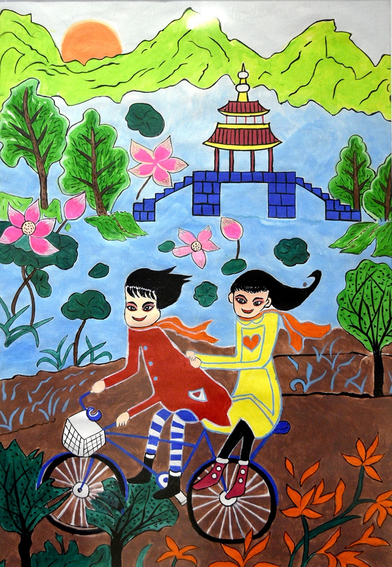 姐妹情(农民画) 王新娥 作