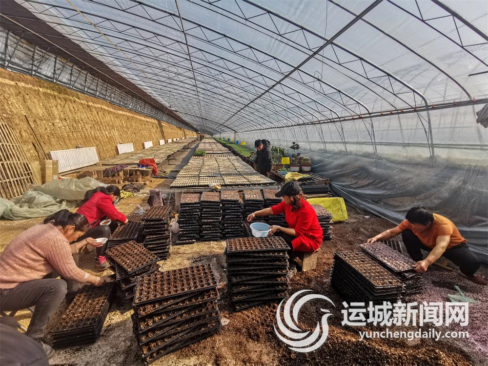 1月17日,在平陆县张店镇一家公司的生态育苗基地,农民们在忙着培育西红柿苗。