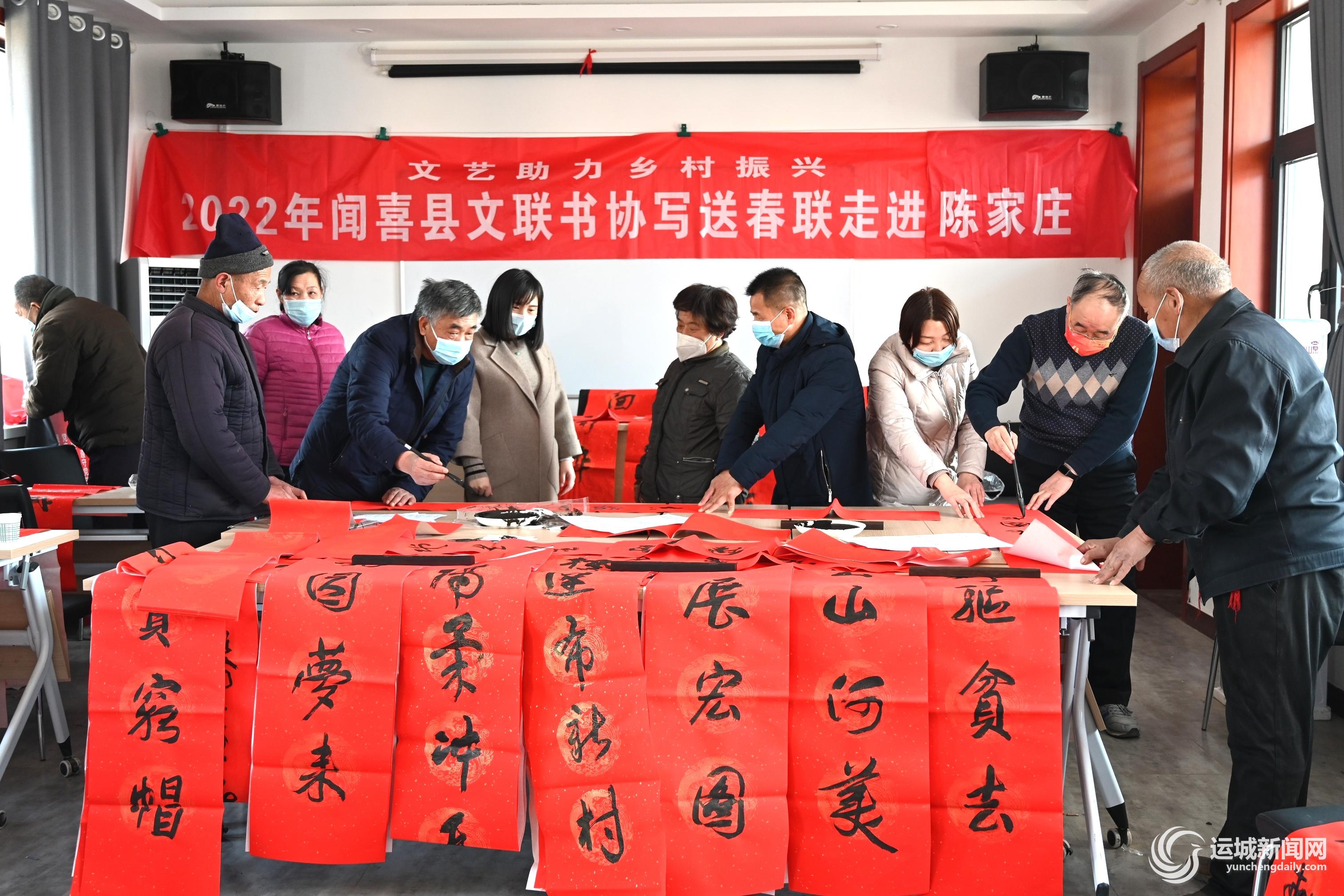 1月18日,闻喜县文学艺术界联合会组织该县书协,在革命老区陈家庄开展为村民书写春联活动。