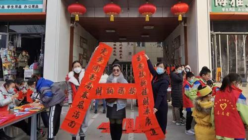 当日,由该校主办的“翰墨飘香送祝福,巧手剪纸迎新春”写春联、剪窗花送祝福活动在该校大门口举办。该校五、六年级学生中的书法爱好者挥毫泼墨,为市民免费写春联,把浓浓的新春祝福送进百姓家中。该校已连续几年在春节前开展义务为市民写春联活动。