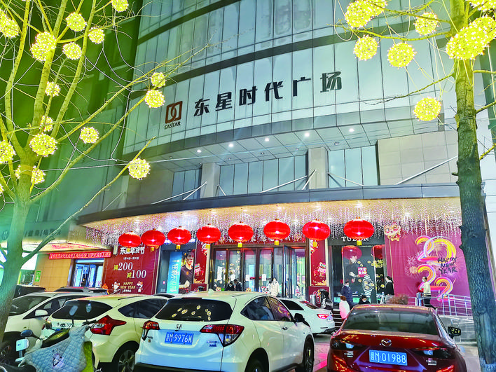 火红的灯笼挂起来,金黄的“满天星”亮晶晶,夜幕下的东星时代广场张灯结彩、喜气洋洋。