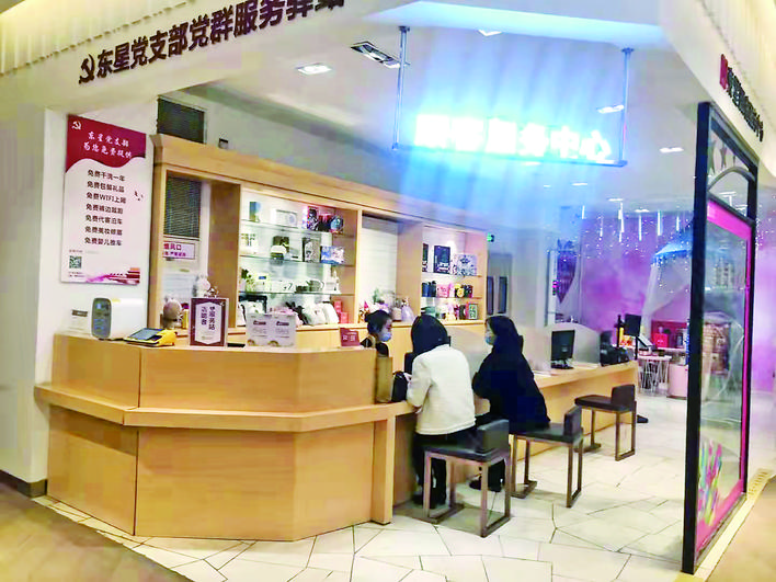 特别是在该商场4楼,该党支部还专门设立了党群服务驿站。在驿站,客户可以享受到礼品包装、免费饮品及轮椅、婴儿车、小药箱等服务。“每一位客户都是我们的家人,我们就必须用心用情服务,让客户宾至如归。”党员钟晨阳说。