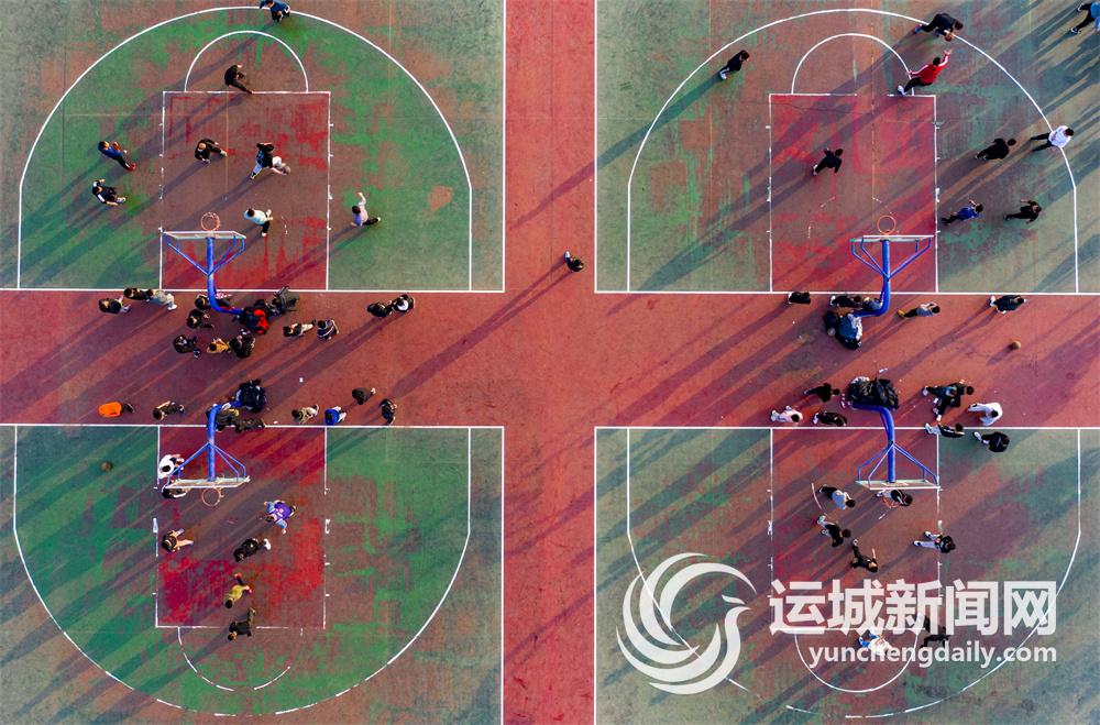 1月17日,河津市体育中心篮球场上,市民们在挥洒汗水享受运动。