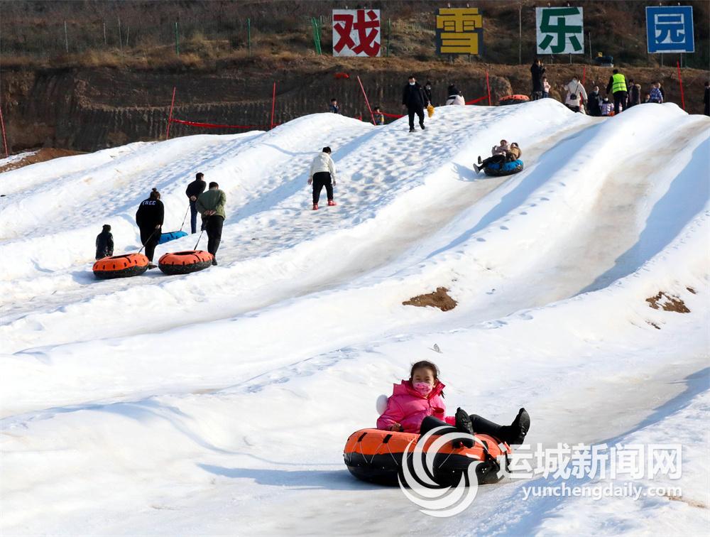 1月19日,游客在岚山根·运城印象景区戏雪乐园游玩。