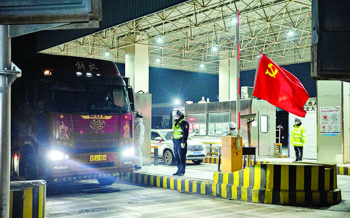 ▲芮城公安民警配合防疫部门,在运宝高速公路芮城服务区,设立疫情防控检查站,对入运人员、车辆进行检查。