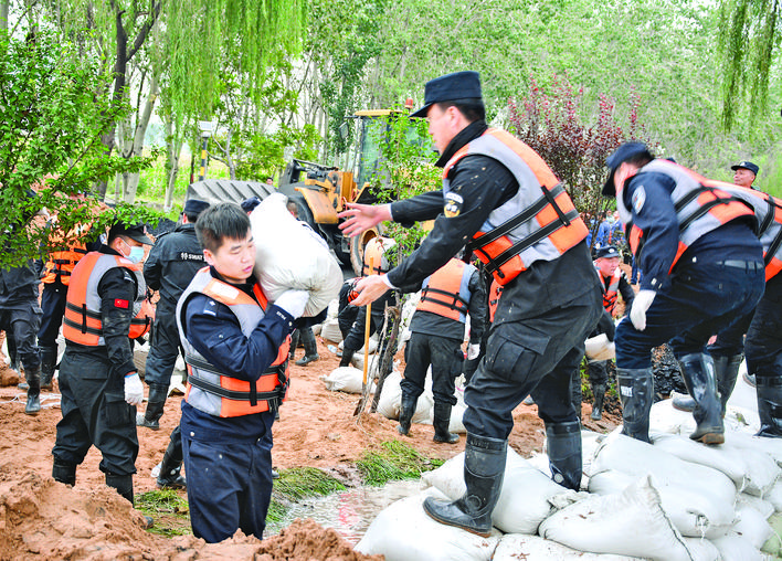 ▲以汛为令,河津公安民警冲锋抗洪一线。