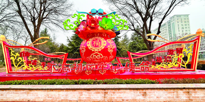 春节临近,在中心城区主次干道、各大公园广场,工作人员加班加点搭建花灯长廊、悬挂灯笼,以盛装扮亮城区,吸引了不少市民驻足观赏、拍照留念,感受这浓浓的年味。