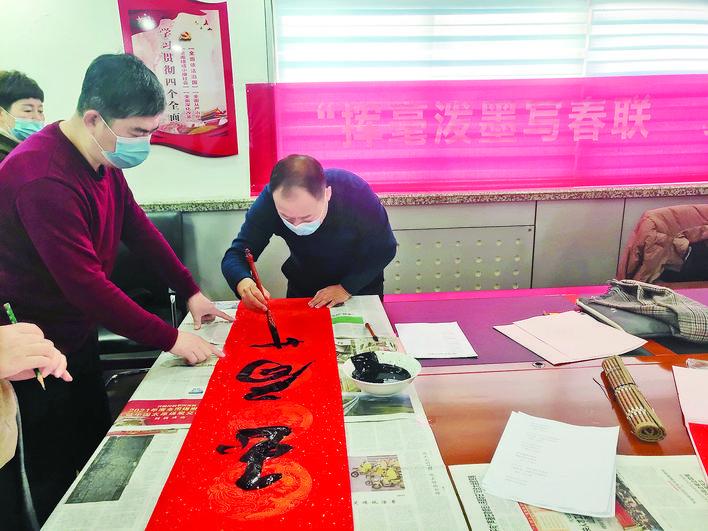 除了把写好的春联送给现 场的居民,社区工作人员和曙光集团的志愿者还上门为辖区孤寡老人、困难家庭,以及在疫情防控工作中起表率作用的在职党员送春联、送祝福。