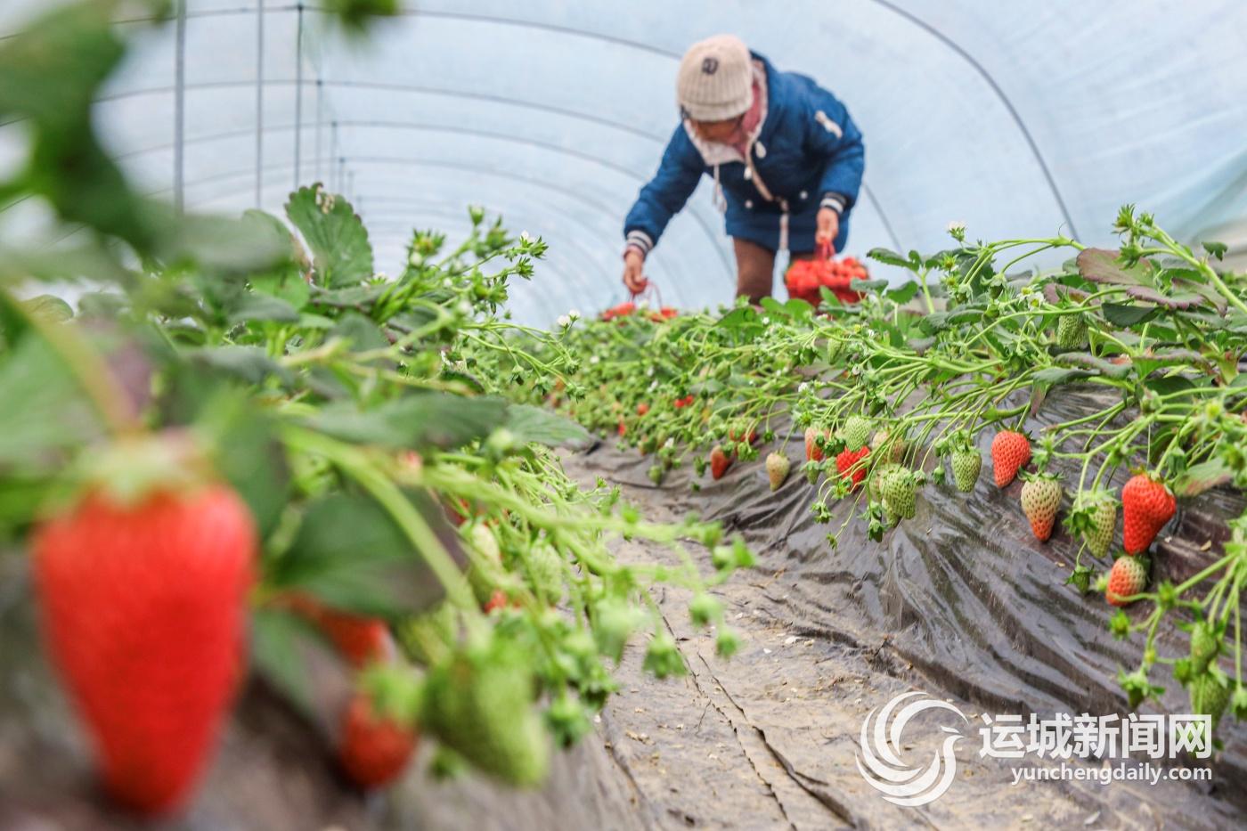 1月22日,市民在临猗县楚侯乡翟家庄的草莓大棚里采摘草莓。