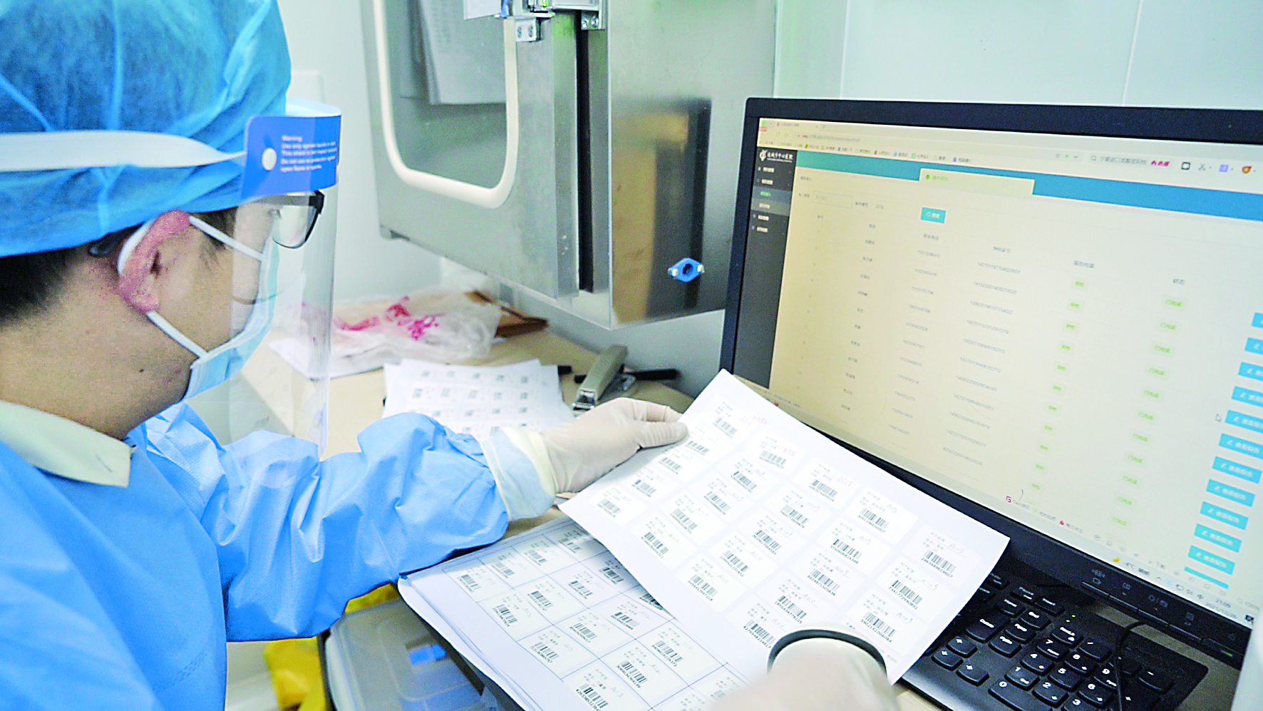实验室共分为试剂准备区、样本制备区、扩增区3个区域,26岁的宋晓波主要在工作压力最大的样本制备区和扩增区工作。作为流水线上的一员,一份核酸样本在他的手里要完成多道工序。安全、快速、准确,是他在自己心里立下的六字箴言。
