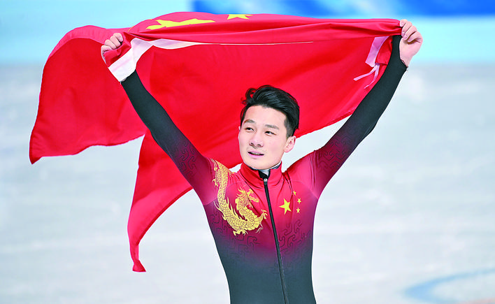 ▲2月7日,任子威在比赛后庆祝。 当日,在首都体育馆举行的北京2022年冬奥会短道速滑项目男子1000米决赛中,中国选手任子威夺得冠军。新华社记者 熊琦 摄