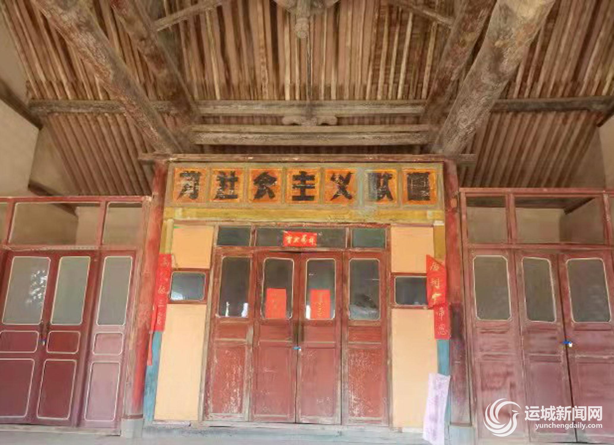 戏台中间还保存着用红漆写的繁体“为社会主义献唱”,台前抱厦的两根石柱上写着简体对联,虽说有些剥落,但字迹仍清晰可辨,证明了曾经戏台的用途。