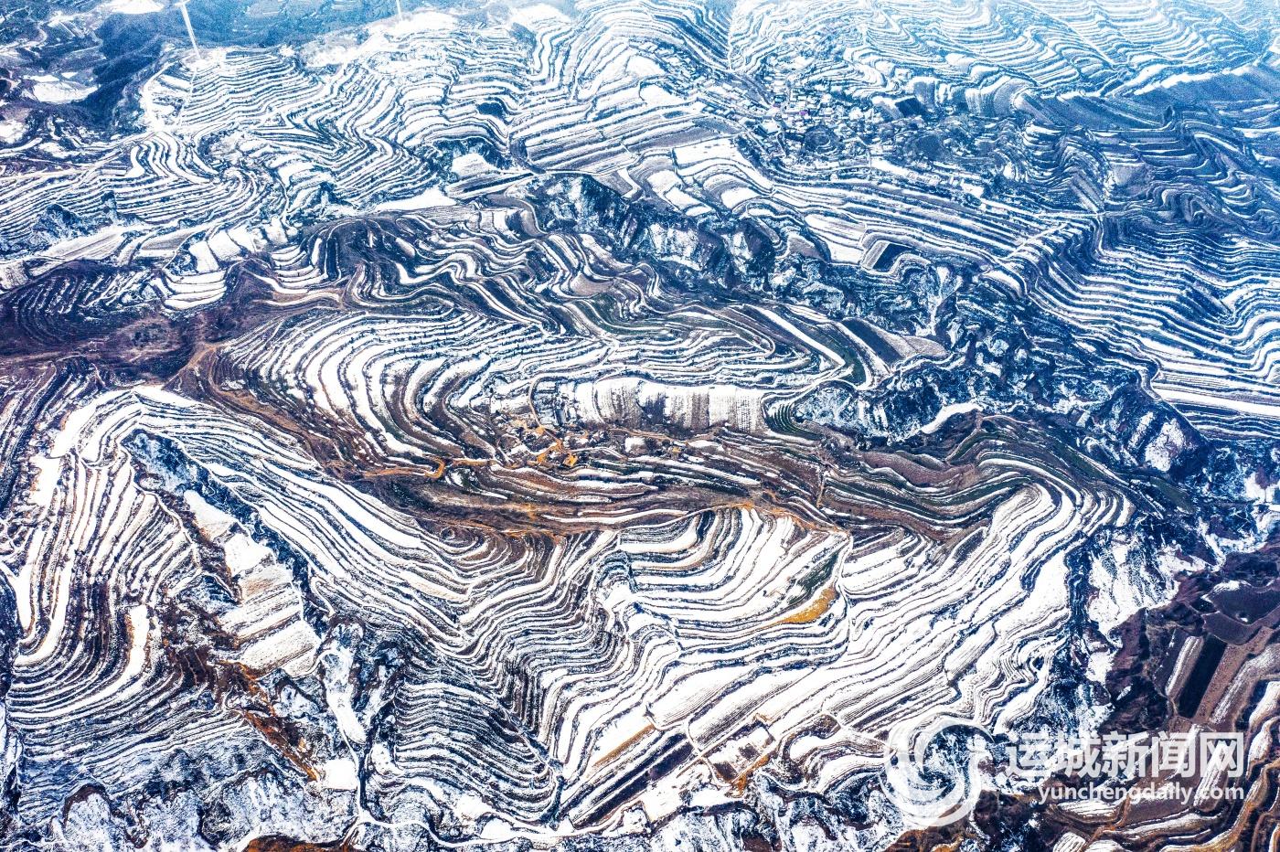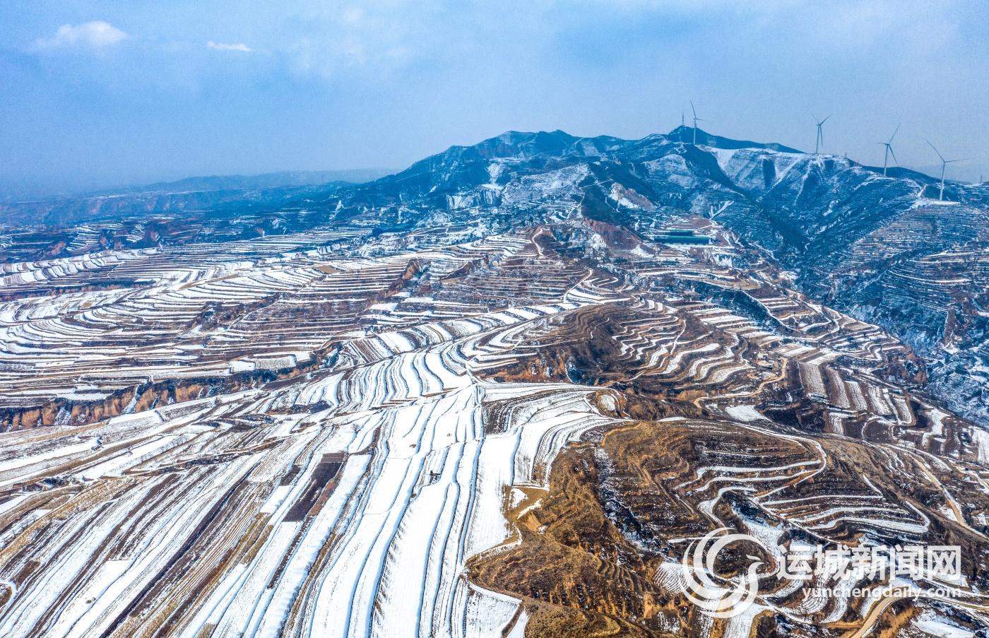近日,五龙村的梯田被白雪覆盖,从空中俯瞰,错落有致的雪线蜿蜒在黄土大地上,与远处的青山白雪遥相呼应,壮美非常。