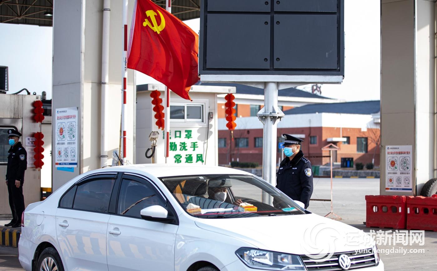 民警在运宝高速芮城服务区开展疫情防控工作