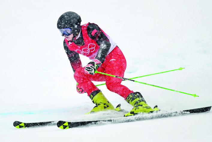 2月13日,中国选手徐铭甫在比赛中。 当日,北京2022年冬奥会高山滑雪男子大回转比赛在延庆国家高山滑雪中心举行。 新华社记者 张晨霖 摄