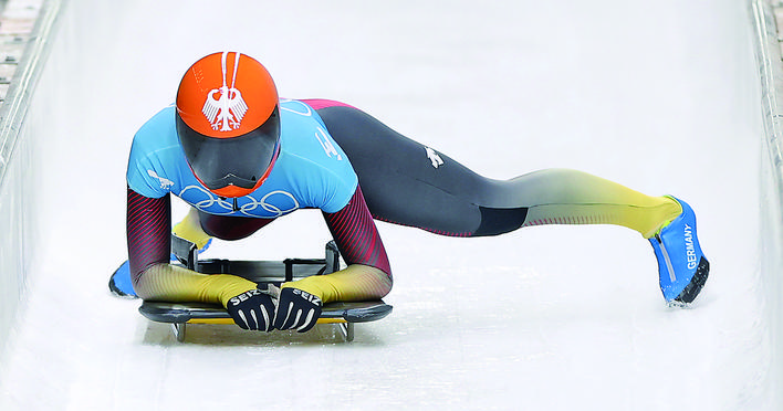2月12日,德国选手雅克利娜·勒林在比赛中。 当日,北京2022年冬奥会女子钢架雪车比赛在国家雪车雪橇中心举行。 新华社记者 姚剑锋 摄