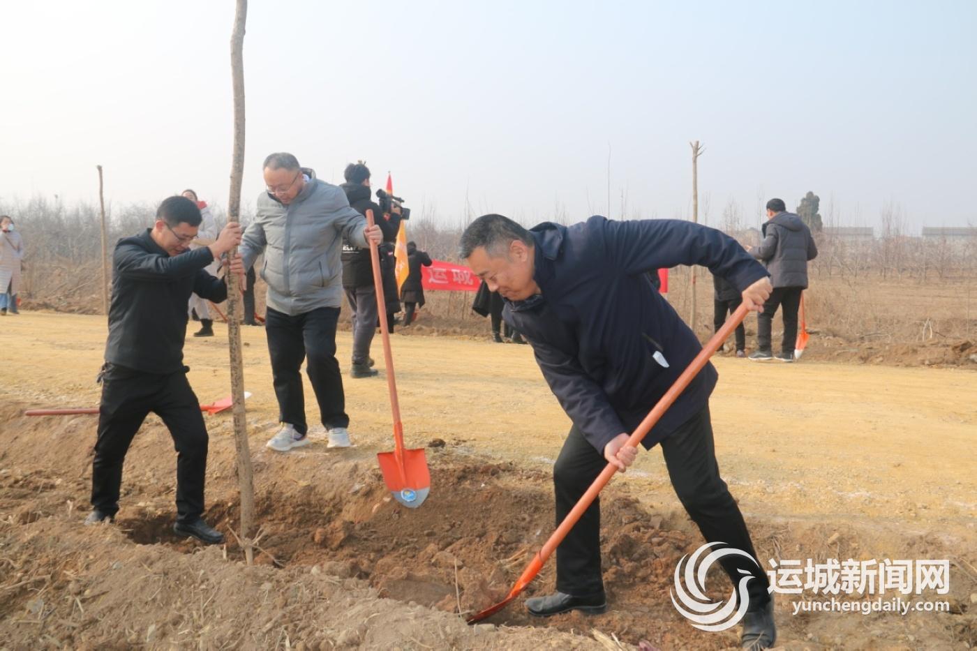 2月9日,盐湖区现代农业发展中心组织党员干部,在泓芝驿镇乔阳村植树造林现场,参加植树。