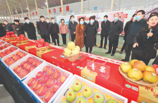 2月14日,项目拉练检查团在观摩芮城县金顺源果业农产品进出口贸易综合体项目。 本报记者 闫 鑫 常 奇 摄