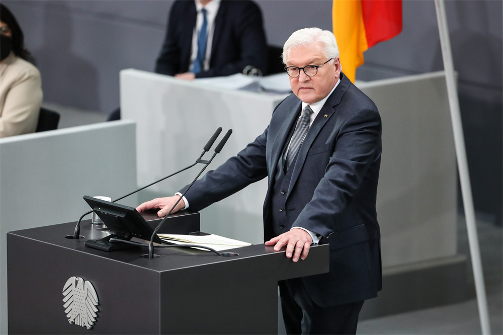 2月13日,在德国首都柏林,施泰因迈尔在德国联邦大会上致辞。德国现任总统施泰因迈尔13日在第17届德国联邦大会总统投票选举中获胜,成功连任。