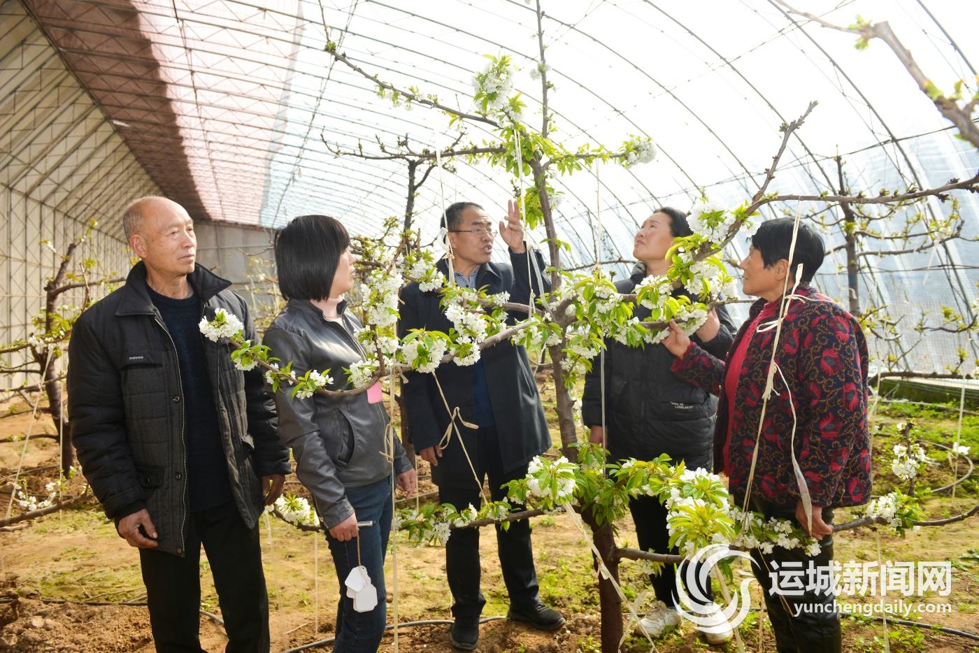 近日,绛县高级农艺师常青记在该县横水镇西灌底村设施大棚,指导果农科学管理大樱桃。