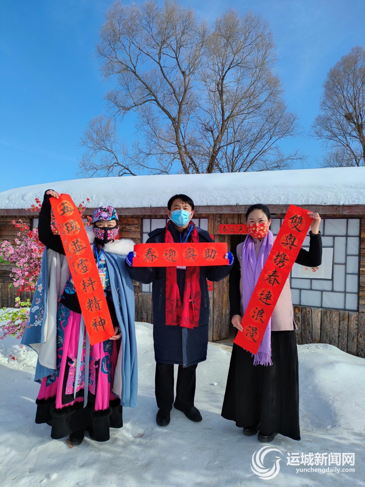 这副楹联由北京艺路通文化有限公司董事长高飞(左)编撰并书写。高飞是我市新绛人,现任新绛县诗联学会副会长。她说,作为一名楹联人,能用自己喜欢的楹联表达对新春、冬奥的情感,这种参与感、自豪感、幸福感是无法用语言表达的,今后会更加努力学习,做好楹联界的“火炬手”。记者 景斌 摄