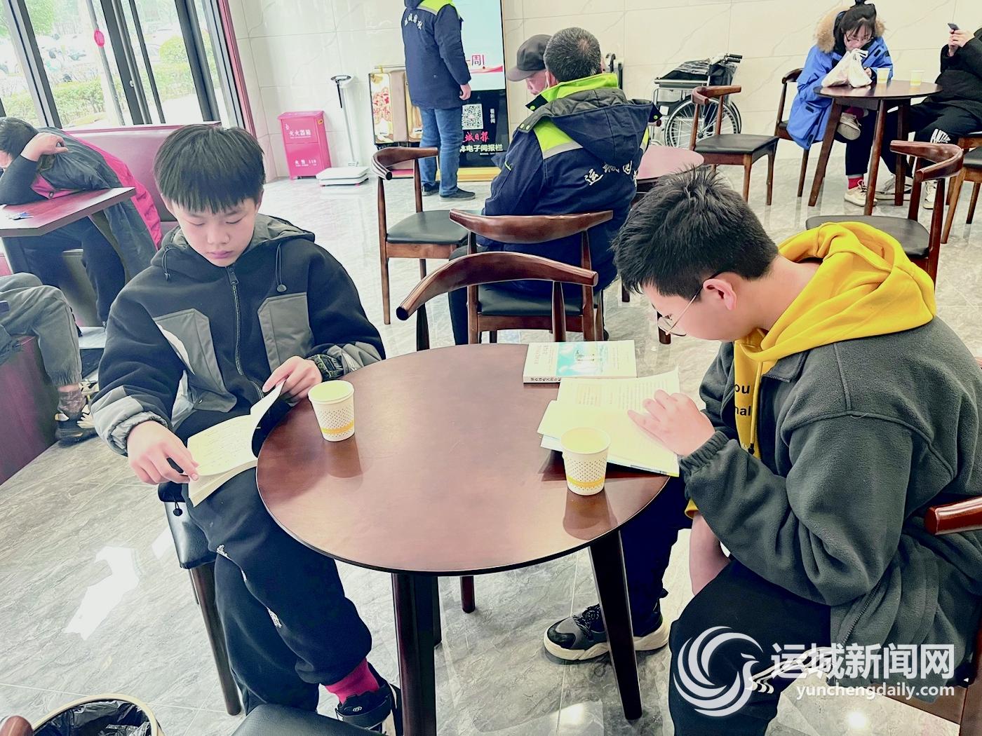 “这本书怎么样?”“我要看这本。”寒假期间,中小学生杨岚翔和李浩嘉,闲在家里无事可做,书店离家较远,听说河东驿站里有很多书籍,环境也不错,便相约一起来到驿站看书。杨岚翔说:“这里有免费使用的WIFI,平板电脑可以联网用,很方便,口渴了还有奶茶和咖啡,在这里待着很舒服。”