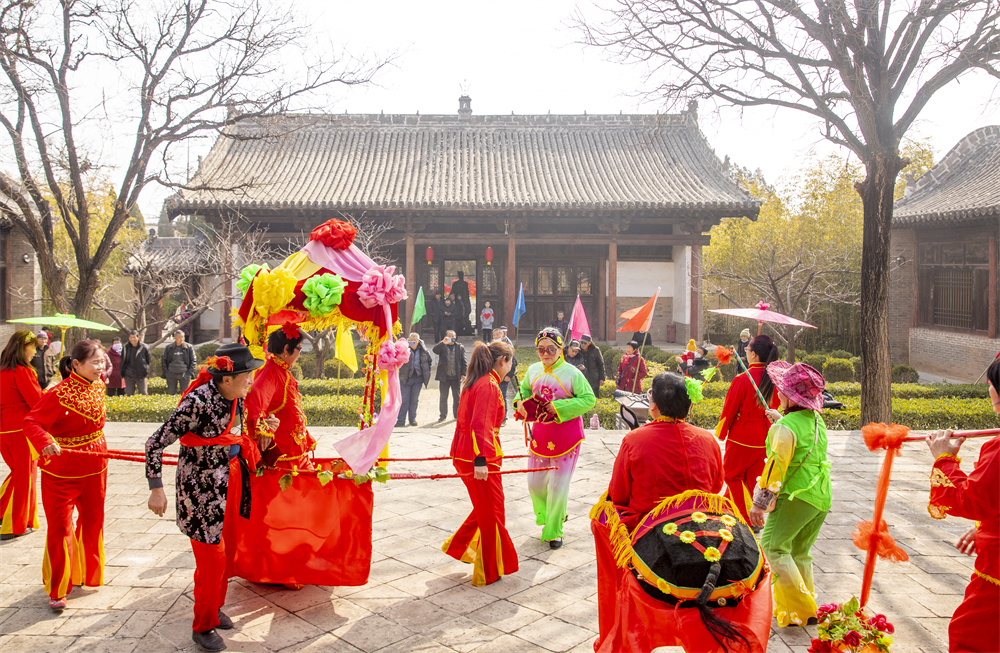 ▲2月15日,夏县瑶峰镇农民社火队为游客表演。特约摄影 姚中吉 摄