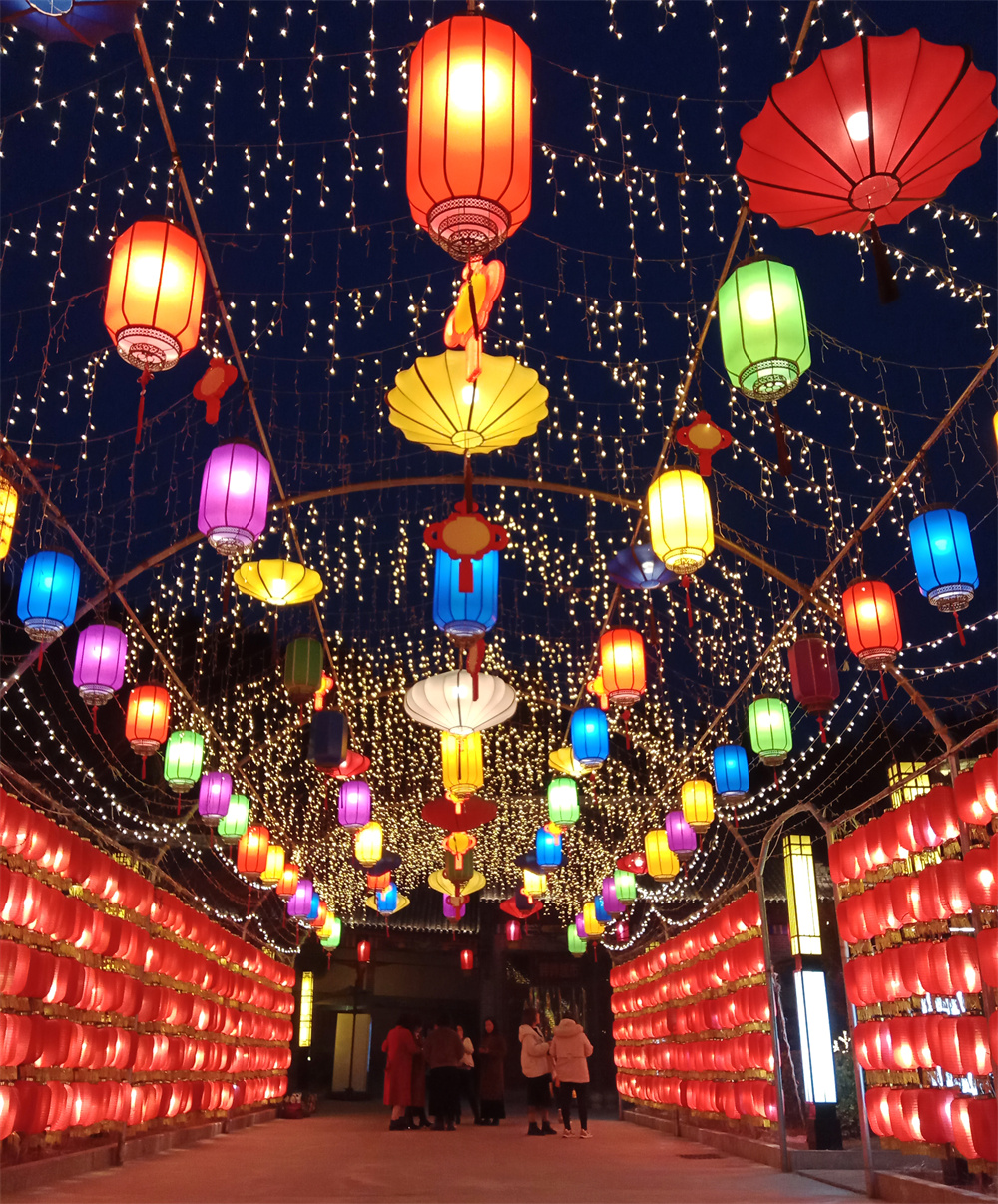 ▲2月15日,游客在稷山县圣王山庄景区观赏花灯。特约摄影 栗卢建 摄