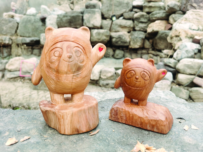 ▲芮城永乐桃木雕刻的“冰墩墩”